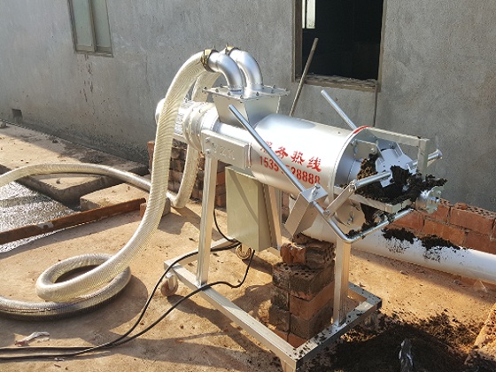 用液下泵將原糞便提高送往牛糞處理機(jī)內(nèi),擠壓成型絞龍將糞水慢慢引向人體正前方,另外不斷提升外緣的工作壓力,驅(qū)使原材料中的水份在邊壓帶濾的功效下擠壓網(wǎng)篩,排出排水管道。牛糞處理機(jī)的工作中是持續(xù)的,其原材料持續(xù)的提高至人體內(nèi),外緣的工作壓力持續(xù)擴(kuò)大,當(dāng)大到一定水平時,就將倒料口頂開,擠壓擠壓成型口,做到擠壓成型進(jìn)料的目地。假如注入的排泄物水過多也會經(jīng)溢液管排在原化糞池中也具有了拌和的功效,經(jīng)螺旋式擠壓成型過慮分離出來出的污水可立即配送至沉砂池等。以便把握進(jìn)料的速度水分含量,能夠 調(diào)整服務(wù)器正下方的平衡塊,以做到令人滿意適度的含水量。
